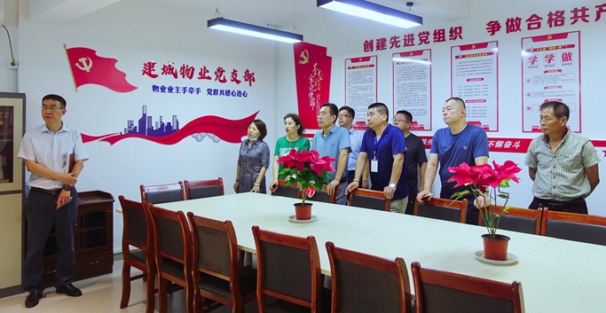 話黨建、共交流、拓思路、謀發(fā)展。為進(jìn)一步加強(qiáng)黨建互動(dòng),積極交流先進(jìn)經(jīng)驗(yàn),切實(shí)提高集團(tuán)黨建工作水平,7月21日,集團(tuán)黨委副書記孫曉東同志、黨委委員呂文秀同志帶隊(duì),組織集團(tuán)黨務(wù)工作者來(lái)到建城物業(yè)公司,學(xué)習(xí)觀摩紅色物業(yè)黨建陣地。
