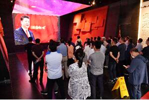 集團(tuán)黨員一起穿越了120多年的時(shí)光隧道,共同回顧了甲午戰(zhàn)爭(zhēng)以來(lái)中華民族救亡圖存的曲折歷程,深刻理解了歷史和人民為什么選擇共產(chǎn)黨、為什么選擇社會(huì)主義等重大話(huà)題,進(jìn)一步增強(qiáng)了對(duì)社會(huì)主義的理論自信、道路自信、制度自信、文化自信。面對(duì)黨旗,集團(tuán)黨委副書(shū)記孫曉東同志帶領(lǐng)全體黨員一起重溫入黨誓詞:“我志愿加入中國(guó)共產(chǎn)黨……為共產(chǎn)主義奮斗終身,隨時(shí)準(zhǔn)備為黨和人民犧牲一切,永不叛黨?!?/span>鏗鏘有力的宣誓聲久久回蕩在館內(nèi),深深感染了現(xiàn)場(chǎng)所有人……