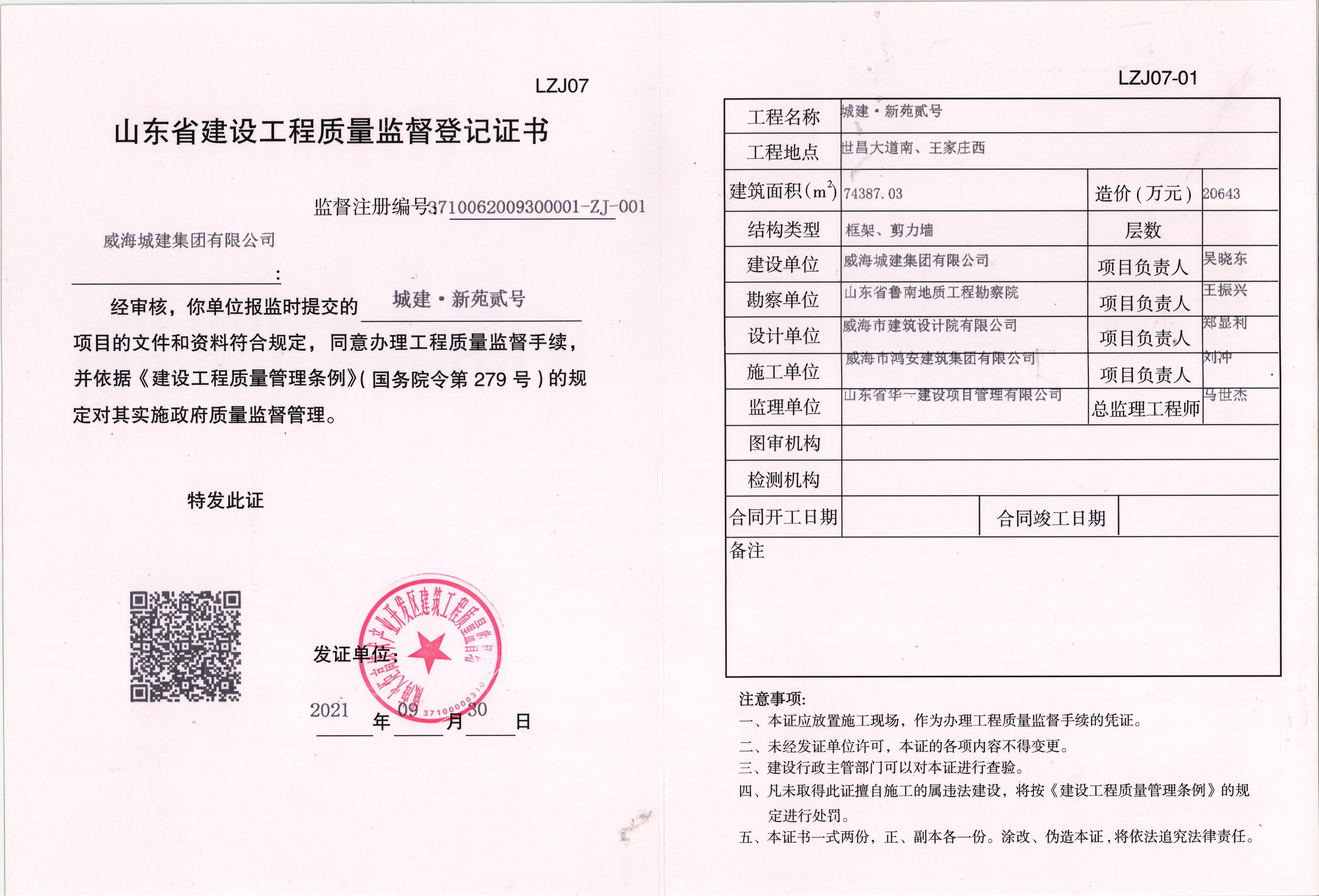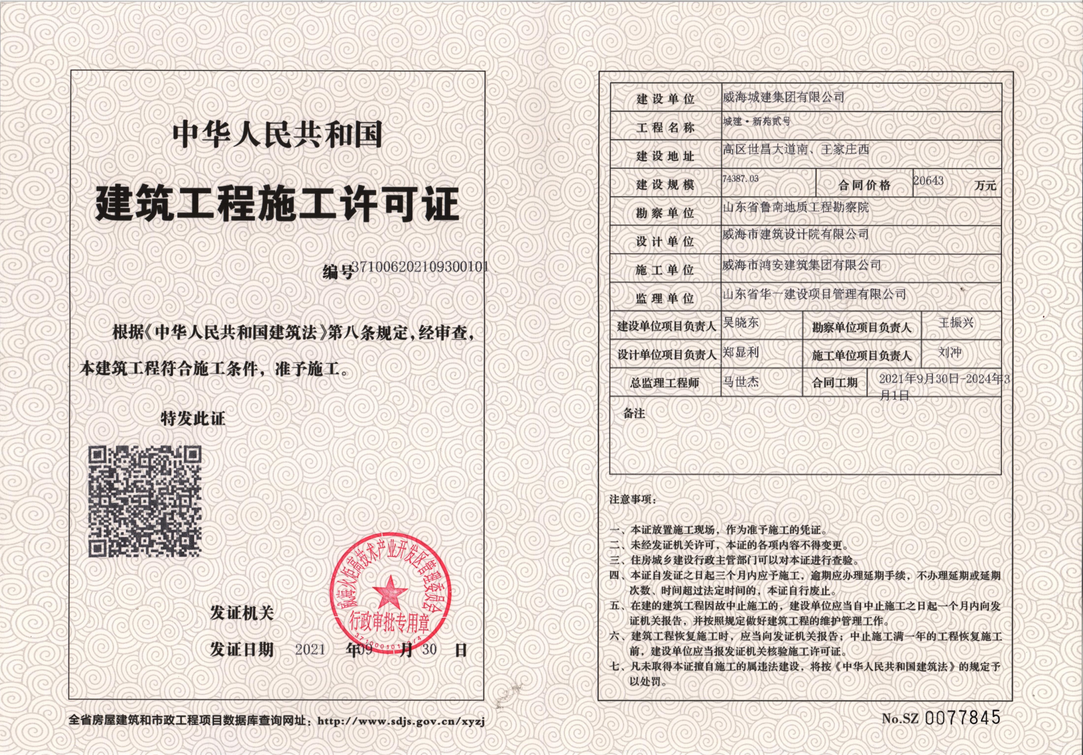 施工單位:威海市鴻安建筑集團有限公司 負責人:宋述智