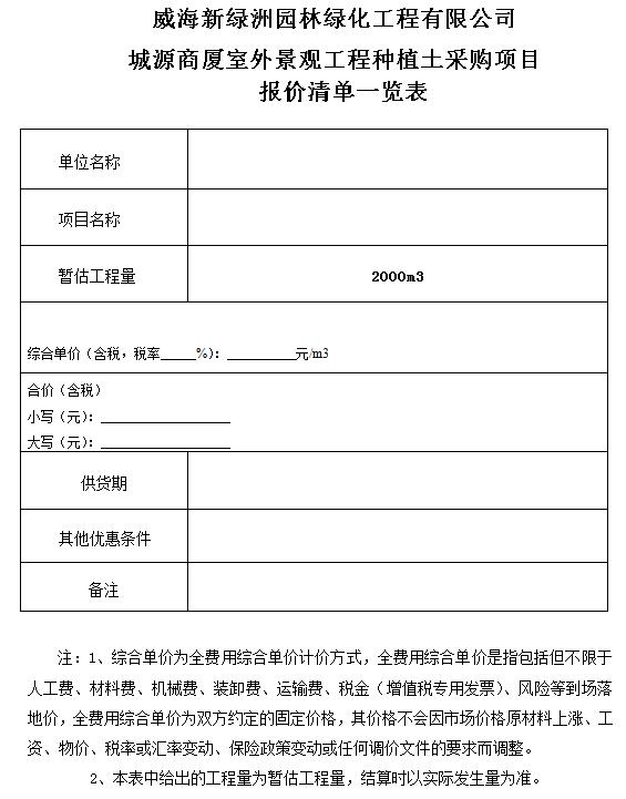 (5)采購范圍:城源商廈室外景觀工程種植土的采購、運輸、裝卸等相關(guān)工作,具體內(nèi)容詳見采購文件。