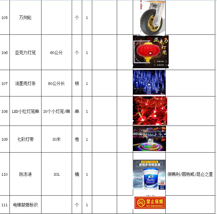 (5)采購內(nèi)容:威海建城物業(yè)物資定點采購,主要包括五金、水暖管件、保潔、維修、綠化所需物資、應(yīng)急維修的其他物資等,采購清單詳見附件。